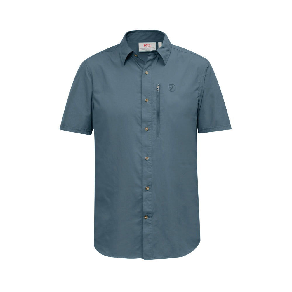 Camisa de manga corta confeccionada con una mezcla de cáñamo y poliéster reciclado, ideal para climas cálidos y tropicales. Su estructura de tejido i...