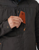 Casaca outdoor de largo medio, ligeramente más larga en la parte posterior y con capucha fija y ajustable. Igual de cómoda para hacer trekking como para ir en bicicleta al trabajo. Brinda protección contra el viento y lluvias ligeras, manteniendo una buena ventilación para evitar el sudor excesivo como con una prenda totalmente impermeable. Está hecha de G-1000 Lite y reforzada con G-1000 en los hombros. Cuenta con dos bolsillos verticales en el pecho y dos bolsillos laterales, todos ocultos bajo solapas. El cierre frontal bidireccional está protegido por una solapa con botones a presión en el dobladillo, el pecho y el cuello. Dobladillo ajustable y botones a presión en los puños.
