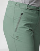 Pantalones ligeros, cómodos y funcionales confeccionados en tejido ripstop elástico con poliamida reciclada que repele la humedad y se seca rápidamente. Ideales tanto para caminatas como para la vida diaria en la ciudad, con rodillas preformadas y refuerzo en la entrepierna para mayor comodidad. Incluyen cinturón integrado con cierre tipo escalera y dos bolsillos laterales con cierre para guardar objetos pequeños de forma segura.