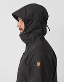 Casaca outdoor de largo medio, ligeramente más larga en la parte posterior y con capucha fija y ajustable. Igual de cómoda para hacer trekking como para ir en bicicleta al trabajo. Brinda protección contra el viento y lluvias ligeras, manteniendo una buena ventilación para evitar el sudor excesivo como con una prenda totalmente impermeable. Está hecha de G-1000 Lite y reforzada con G-1000 en los hombros. Cuenta con dos bolsillos verticales en el pecho y dos bolsillos laterales, todos ocultos bajo solapas. El cierre frontal bidireccional está protegido por una solapa con botones a presión en el dobladillo, el pecho y el cuello. Dobladillo ajustable y botones a presión en los puños.