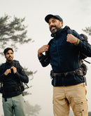 - Confeccionados en G-1000 Air Stretch con mezcla de poliéster reciclado y algodón orgánico, son ligeros, empacables y resistentes al viento